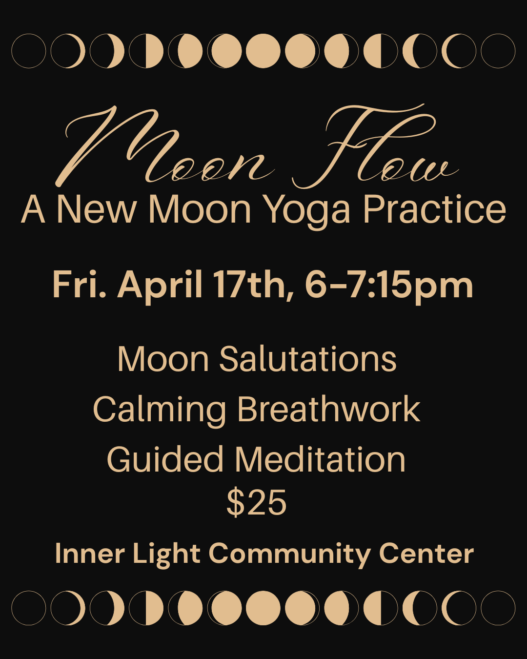 This class is open to all levels and offered as an invitation to slow down, turn inward, and practice in rhythm with the lunar cycle.