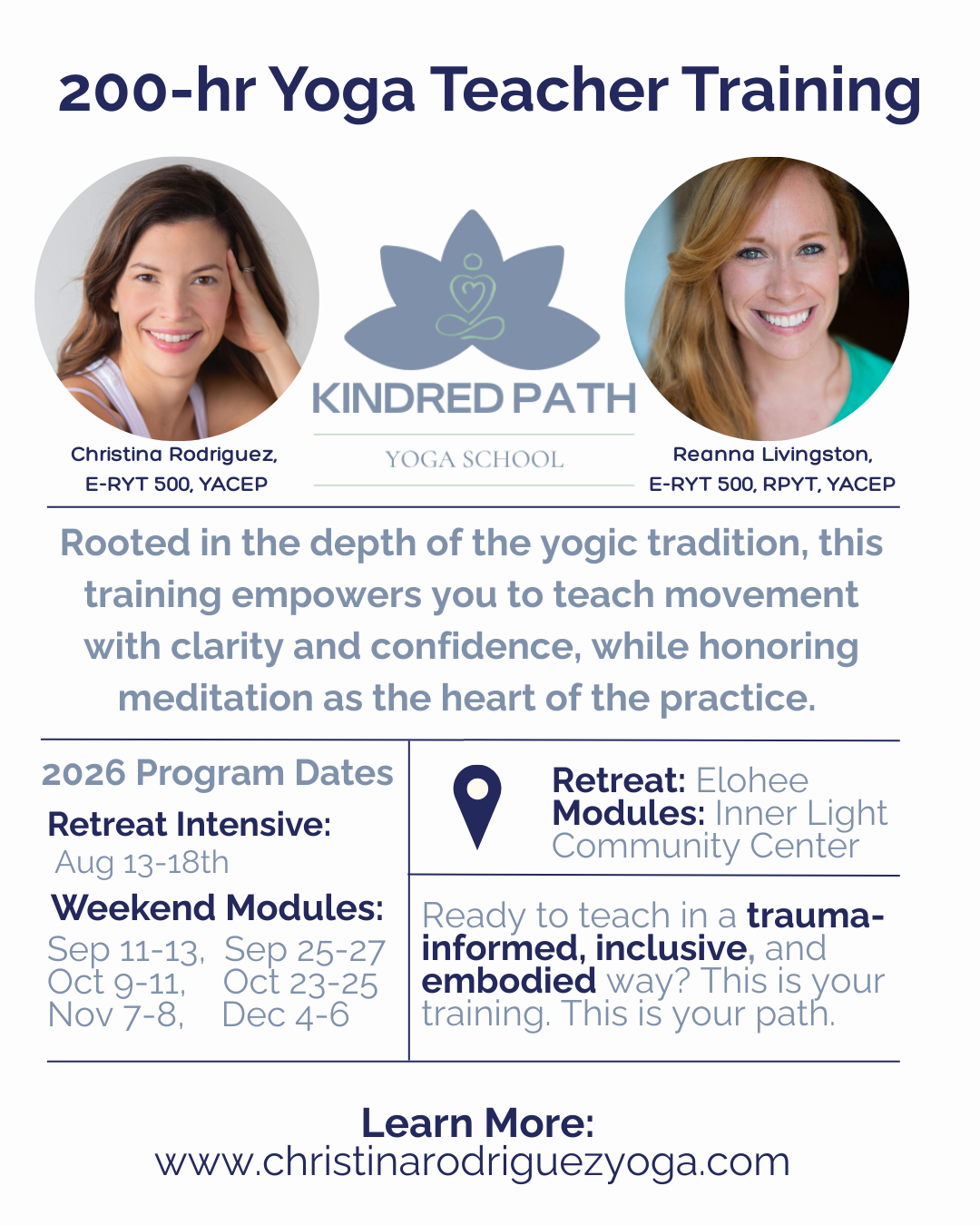 Teaching for All Bodies: Assists and Sequencing is a core module of the Kindred Path Yoga Teacher Training. This weekend centers accessibility, consent, and adaptability as essential skills for ethical and effective yoga teaching.