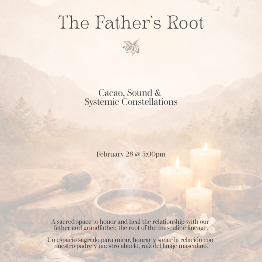 Through systemic constellation work, ancestral cacao, and sound healing, we open a grounded and supportive space to reconnect with the wisdom of the body and the ancestral field. This ceremony invites movement from the root, allowing what has been held in the lineage to gently shift, reorganize, and find balance.